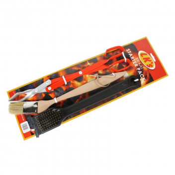 All the basic braai accessories you need in one set. Includes 1x medium braai tongs, a plastic basting brush and a plastic grid brush.