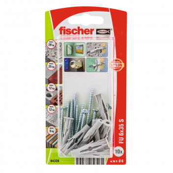 The fischer universal fixing FU is an easily set fixing for almost all building materials. The fischer FU, made of high-quality nylon, expands in solid building materials such as concrete and aerated concrete. The anchor sleeve buckles with perforated and panel building materials, ensuring maximum hold. The fixing is suitable for wood and chipboard screws. Lamps, cornicing, lightweight shelves, and wall cabinets can be fixed in the through-type installation.